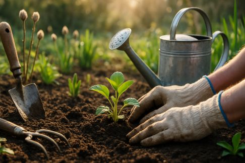 - Arrosage au pied des plantes : Privilégiez le goutte-à-goutte ou une rose d’arrosoir sans mouiller le feuillage pour économiser l’eau et limiter les maladies.
