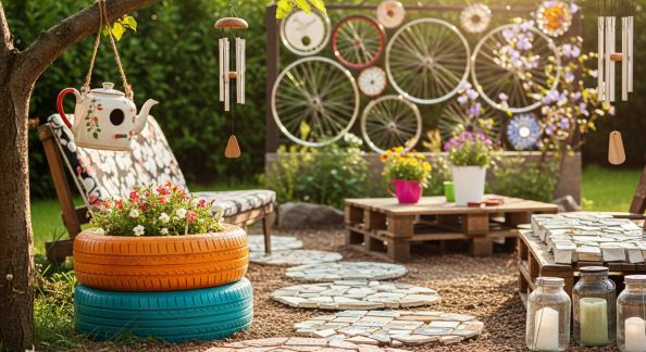 - Supports à outils : Ajoutez des crochets ou des pots métalliques recyclés pour ranger sécateur, gants et petits accessoires à portée de main.