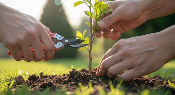 - Sécateur ou ébrancheur : Pour le nettoyage du bois mort, grandes branches ou finitions soignées.